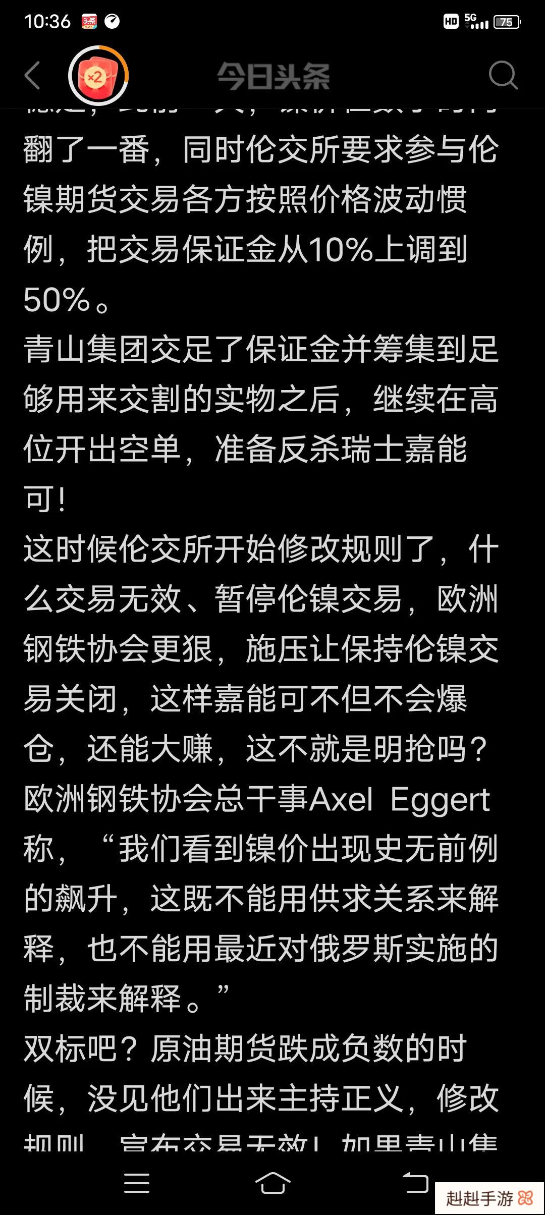 现在伦交所确定的交易有效日是7号的,而7号的收盘价好像是5万美元一吨。大家在自媒体上看到的收盘价10万,8万的,都是8号的,而伦交所已经把8号的所有交易都作废了。