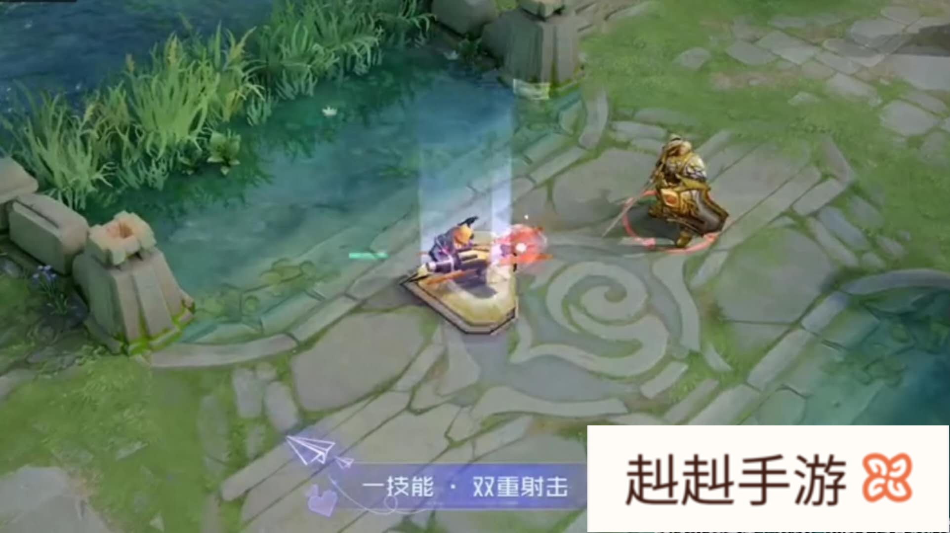 一技能的加速过程,会看到一个心形图案从头到脚落下,消失后会看到武器头的旋转,意味着强化普攻。