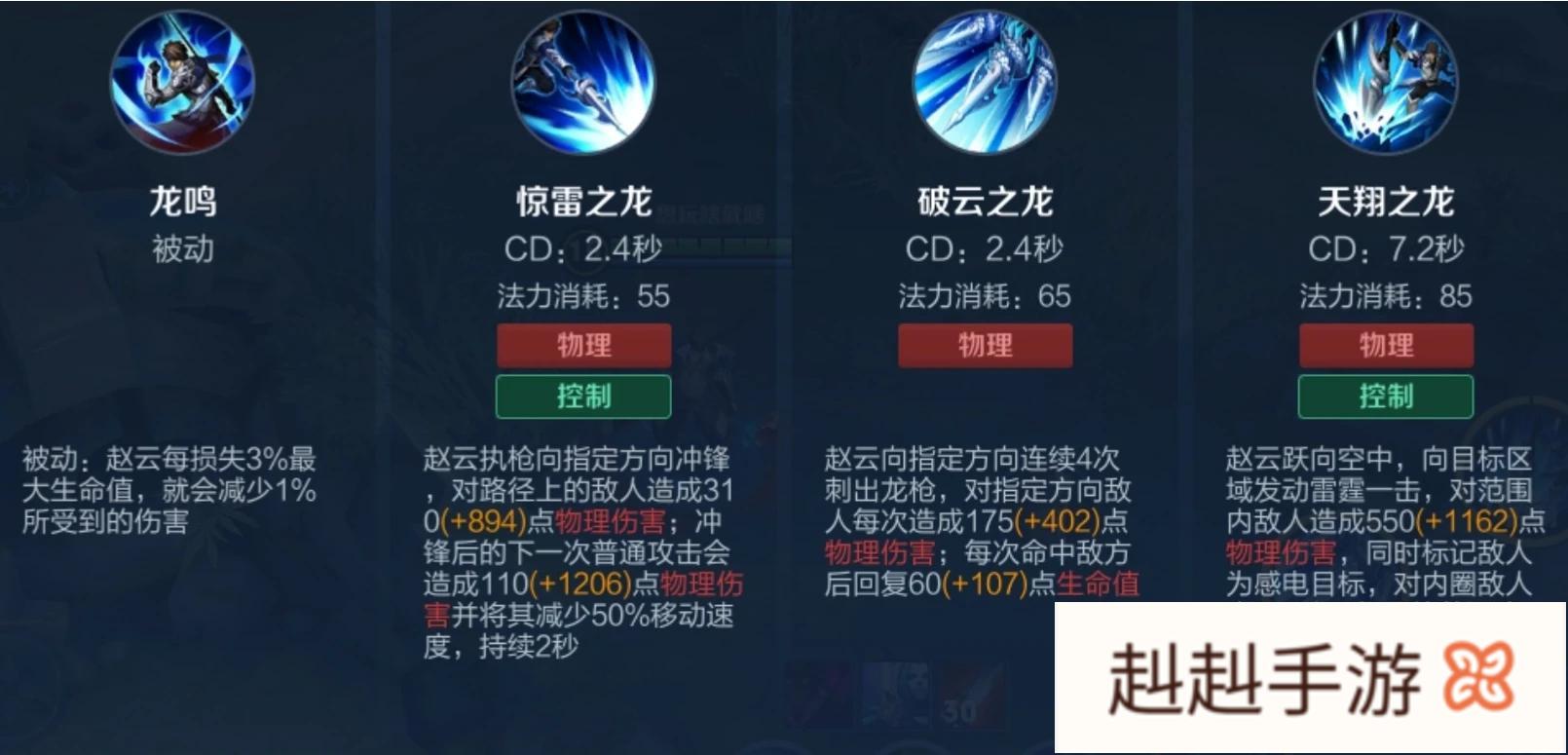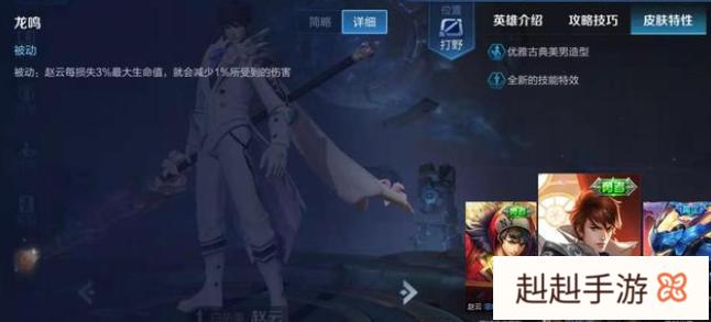 赵云主要是有大招的时候,伤害会有额外的加成,加上血量越少,减伤越多,也给赵云有了喘息对战的时间,加上大招有击飞效果,可以顺畅的打出一套连招,如果输出够的话,秒杀后排还是可以的,会将脆皮打得一个措手不及。