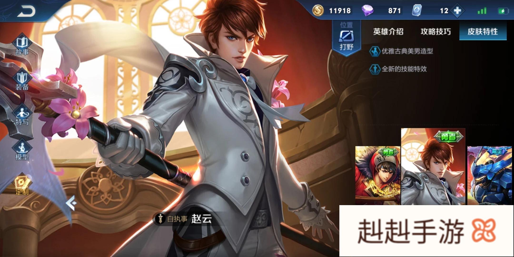 在目前的王者荣耀里面,打野英雄非常的多,但是能够上场的打野英雄却没有几个,基本上在王者荣耀新的版本里面,上场最多的应该就是李白,韩信,孙悟空,这也是这个赛季的趋势,而且这个赛季射手的崛起,打野英雄更加的不好混,忙来忙去的,经济也不高,如果经济比别的英雄低,很容易就切不死,一局比赛玩的和混子一样,今天我就和大家说一下,最近我正在使用的英雄,那就是这个六元英雄,赵云。