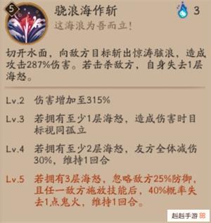 315%的伤害系数在单体爆发中并不算香,但考虑到3层海怒60%增伤以及各种额外附带效果,效果就非常可观了。再加上1层海怒下伤害不可分摊对椒图的克制,本身作为输出式神的能力是有保障的。