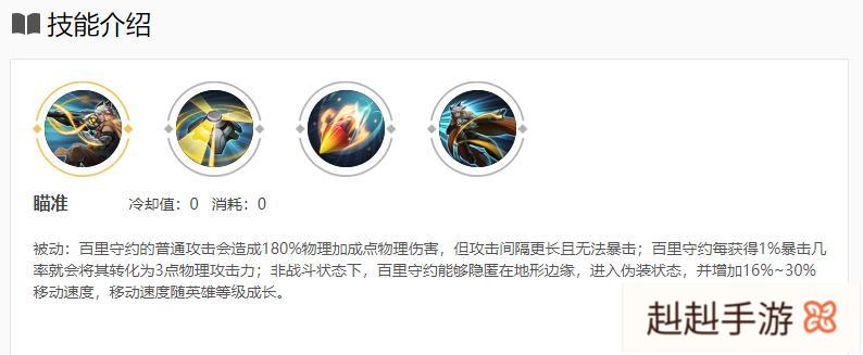 隐身绝对是玩家最希望获得的能力之一,而提到隐身能力,大家可能第一时间想到的就是兰陵王和阿轲这两位刺客英雄,亦或者是鬼谷子这位拥有群体隐身的辅助英雄,但是无论是兰陵王、阿轲还是鬼子,隐身都有时间限制,而且有长达10年的CD限制。而被大家忽视的百里守约同样有着隐身的能力,虽然并非完全隐身,但是只要在某一地方静止不动,也很难被发现,而且被动技能不需要考虑10年CD的问题。