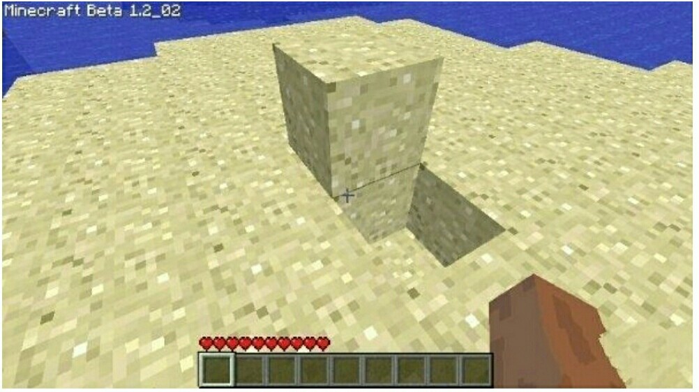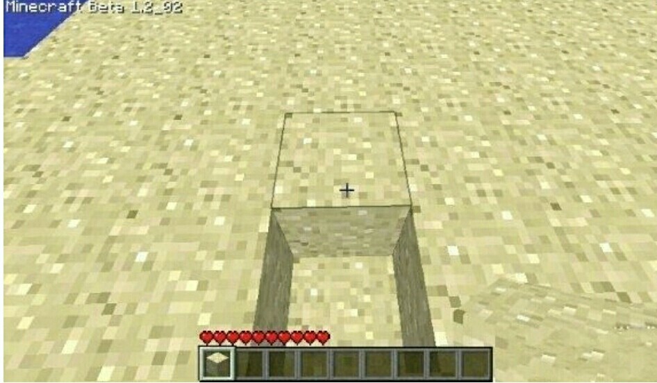 这就是你挖完坑之后的样子,可以看到里面有个沙块,你每次破坏完的东西都会以这样的形式提供给你需要的物品,我们可以跳进去捡起它,注意要从坑里出来需要按空格跳出。