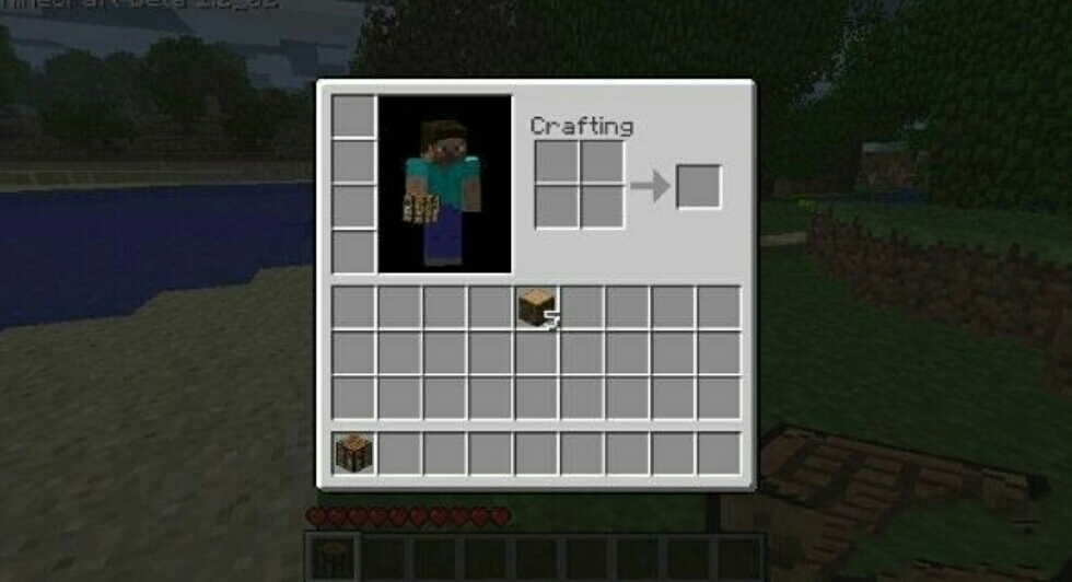 这就是我, 制作成的第一个物品了,工作台,我们可以看到你手上已经拿着它了。