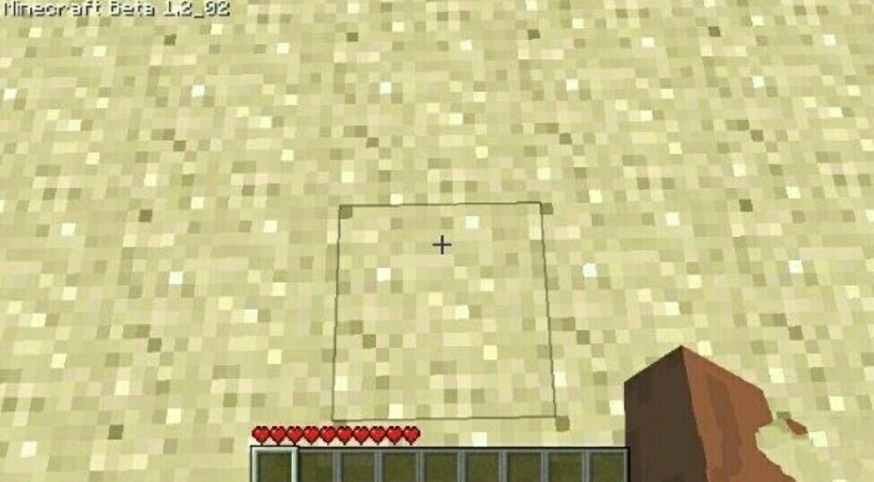 这样你就可以看到物品栏里有了沙块,下面你要做的就是使用这个沙块来给你的出生地做个标记,只要用鼠标滑轮滚动就可以切换物品栏里的物品用以使用。然后准星对着你要摆放的位置,点击右键就可以了。