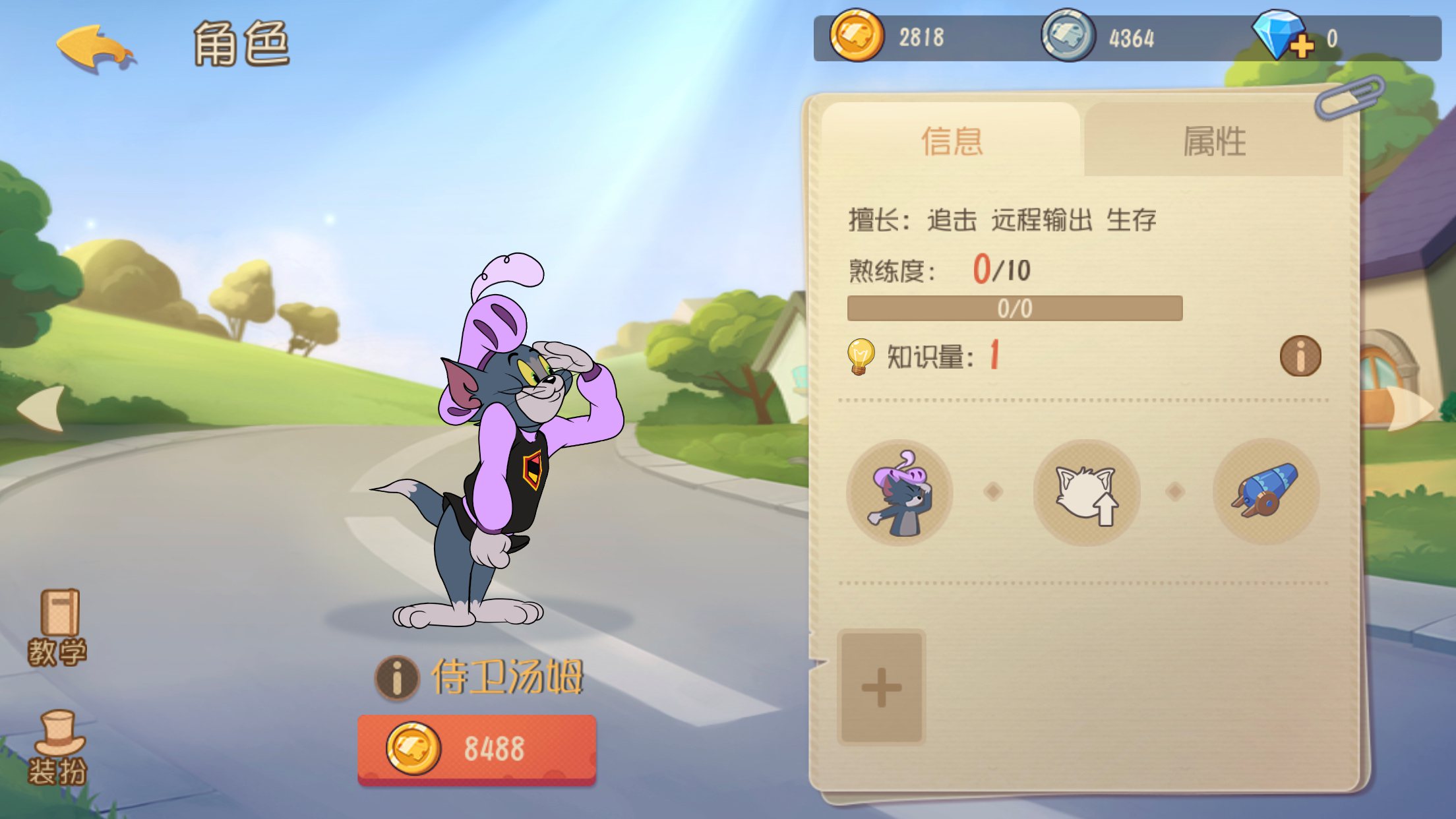 作为最经典的猫咪汤姆,虽然他在动画中很笨,但是他绝对不是弱者,特别是在解锁平底锅之后,汤姆的实力更是如虎添翼,平底锅配合击晕直接可以秒掉一只老鼠。但是被削弱之后伤害总是不够,我们就可以拿一个拍子弥补被削弱的伤害