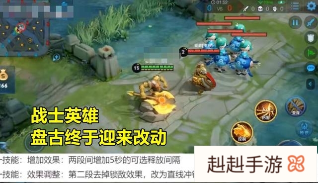 两段位移将盘古的机动性瞬间提升一倍!而大招的前摇效果,就相当于没调整前的盘古每次开启大招时蓄力0.2秒,一技能的跳跃就是盘古大招的前摇动画效果,所以在使用一技能的跳起瞬间接大招能够立即释放大招!(由于大招将无法再调整释放位置,需要同学们对战场把握需更精准)本次调整属于提高英雄上限,给予盘古更多可能性。