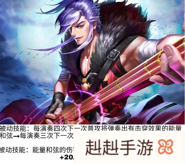 被动技能:每演奏四次下一次普攻将弹奏出有击穿效果的能量和弦→每演奏三次下一次普攻将弹奏出有击穿效果的能量和弦