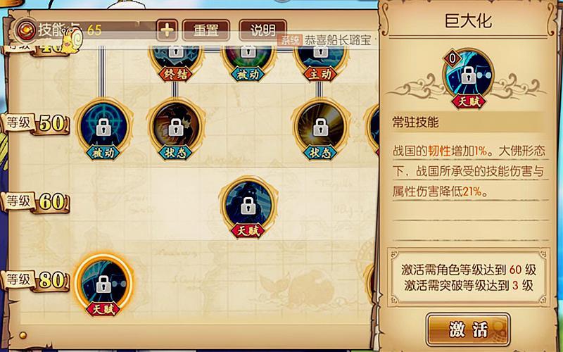 您好,《航海王热血航线》是由日本著名漫画家尾田树起笔的《航海王》系列作品改编的一款手机游戏,战国技能是游戏中的一种特殊技能,以下是战国技能介绍: