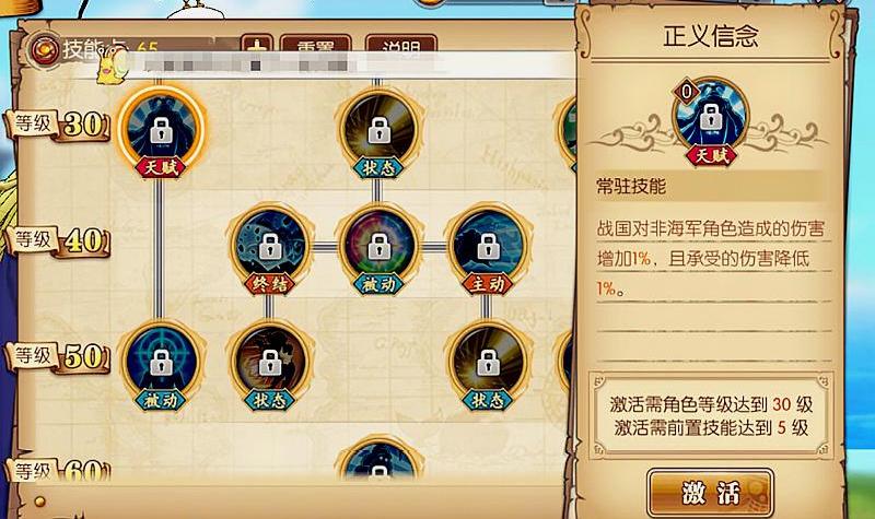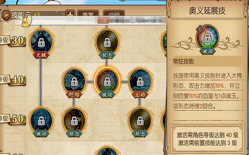 被动方面分别是:血量强化(5级)、防御强化、血量强化(30级)、奥义延伸技、命中强化、攻击强化
