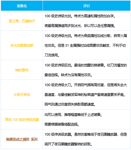 dnf100级版本各职业装备搭配