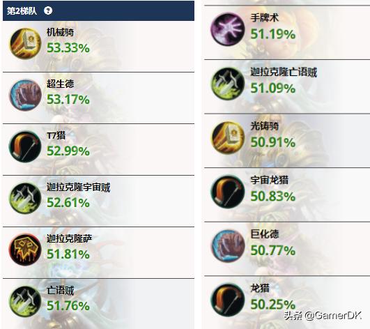 从游戏可观赏性上来说,只有5个职业有JK,对剩余4个职业有些不公平。从目前天梯环环境来看,这两组职业T1、T2都有名额。