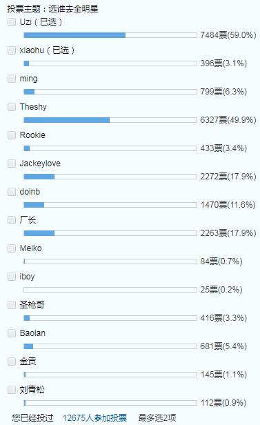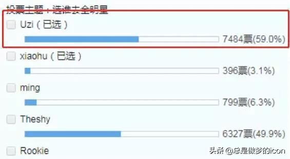 今年比赛也接近了尾声,玩家们也是自发了一个全明星的投票,可能是为了先试试水到底看一下谁的人气更高,其中有着很多的选手,不仅仅包括三只参加世界赛的队伍,更是有一些其他队伍的知名选手,但是就目前的投票状态来看,rng战队的uzi依旧的榜首,看得出来。他在玩家心目中的地位还是非常高的。