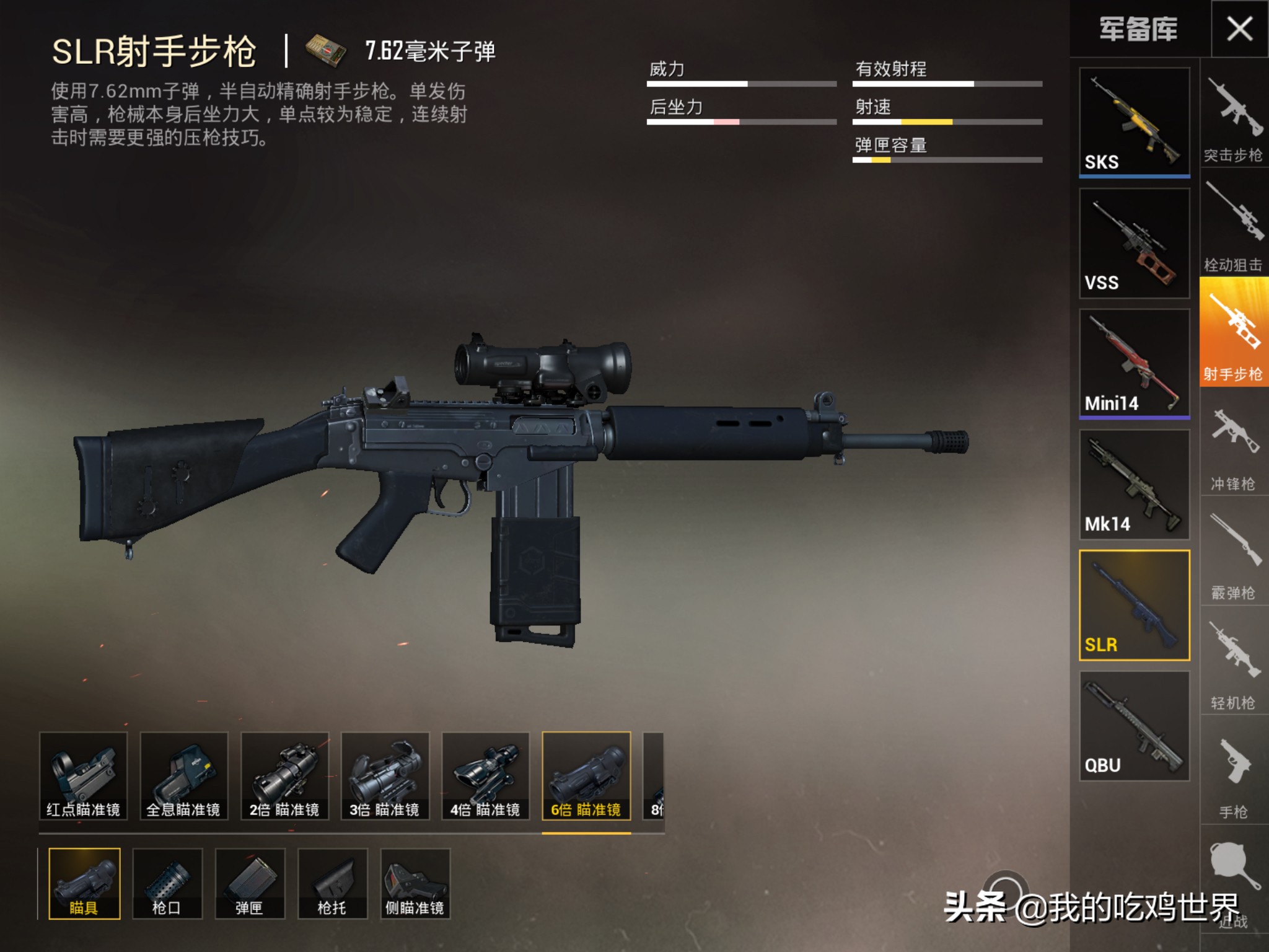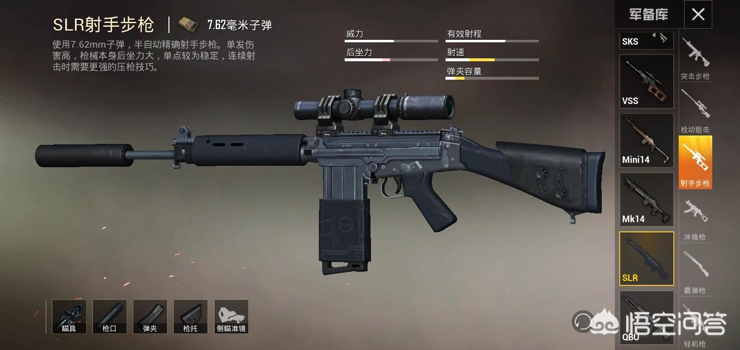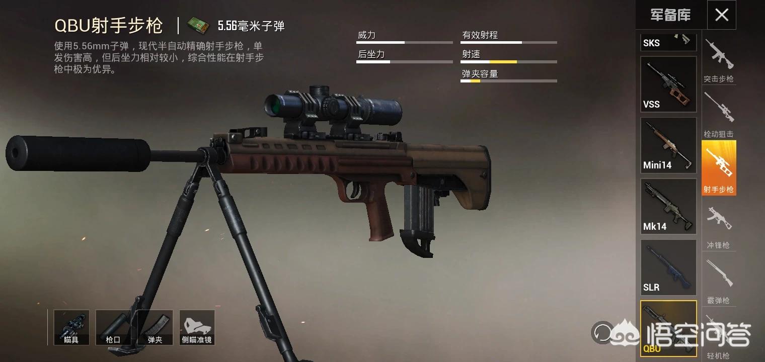 枪械类型:SKS、MINI14、VSS、SLR、MK14、QBU。