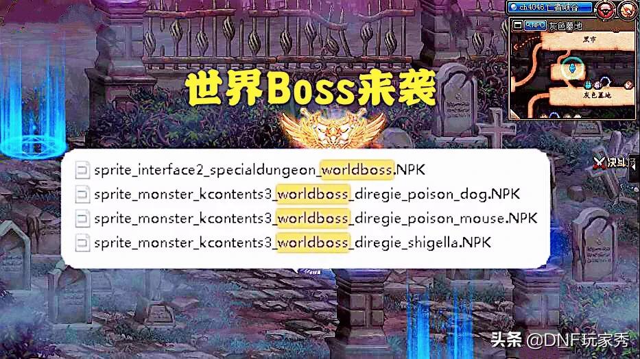DNF体验服更新了100级版本,大量的100级史诗更新成为玩家关注焦点,但是,却有玩家在拆包文件的时候,有了意外的重大发现:世界Boss!如图所示,在拆包的文件里,赫然出现了“worldboss”字样,地下城的团本模式难道走到了尽头,要开启全新的“世界Boss”万人挑战模式了吗?