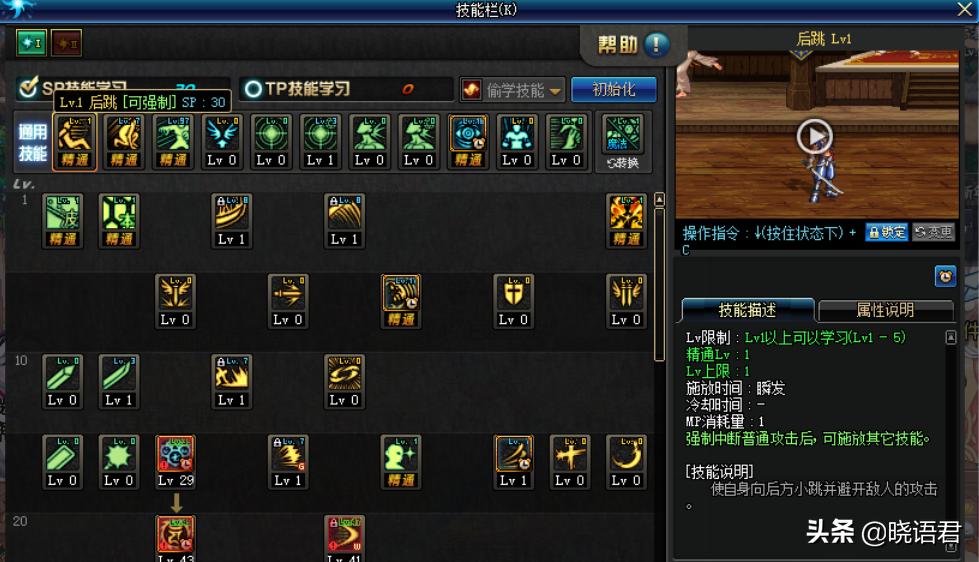 仔细看一下这位玩家的技能快捷栏,通过我水火不侵的火眼金睛,可以确认这是一位剑魂玩家,但这并不重要,重要的地方在于,这位玩家的快捷栏竟然摆放了一个所有职业的通过小技能,“后跳”!