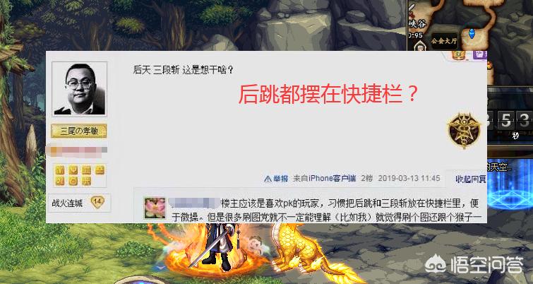 所以那些把后跳三段斩摆放在快捷栏中的玩家,大多数都是所谓的“PK党”,如果仅因为后跳摆在了快捷栏就被吐槽为“手残玩家”,那PK党玩家也太不幸了,而一般来说呢,PK党的玩家普遍手法都会比刷图党更好。
