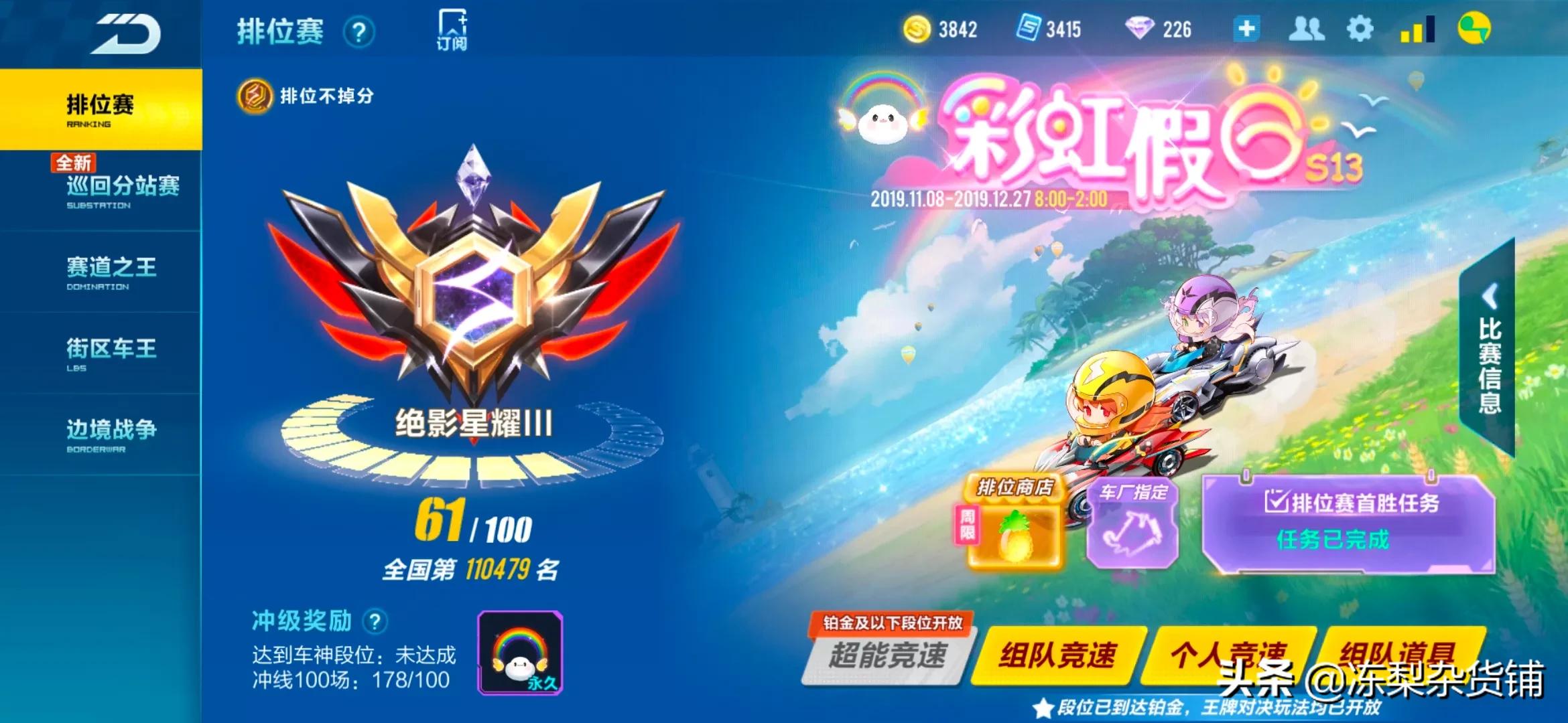 目前排位积分竞速和道具是一起计算的,有心的玩家会发现段位靠前的玩家都多多少少玩过道具。没办法,当前实况就是车神高分段,竞速很难匹配到人。你要不就邀请其他人同时匹配,要不就只能妥协去道具上分。