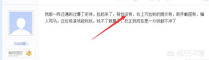 虽然图中爆出来的是一件没用的史诗(苍穹爪)但是还是激起了玩家的愤怒,表示自己没有开挂,正常的玩游戏也能给我整掉线,原因还是“检测到数据异常”从我的经验来看这位玩家应该是刚入坑不久,不了解这游戏的特点,掉线算什么?站街都能给你制裁了,这种情况在我们这些老玩家看来简直太正常不过了,甚至还有人遇见捡起来背包里也没有的情况。