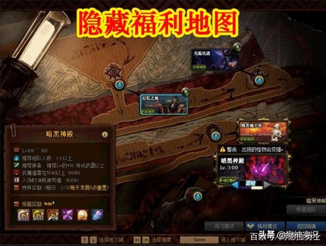 同理也可以应用在暗黑地下室和暗黑神殿这两张福利地图上面,我们都知道这两张地图每天前2次是可以获得惊喜奖励的,有几率翻牌翻到神话装备。而每天打四次福利地图是很多玩家的日常了,其实这个福利地图还是DNF100级版本最强搬砖圣地。