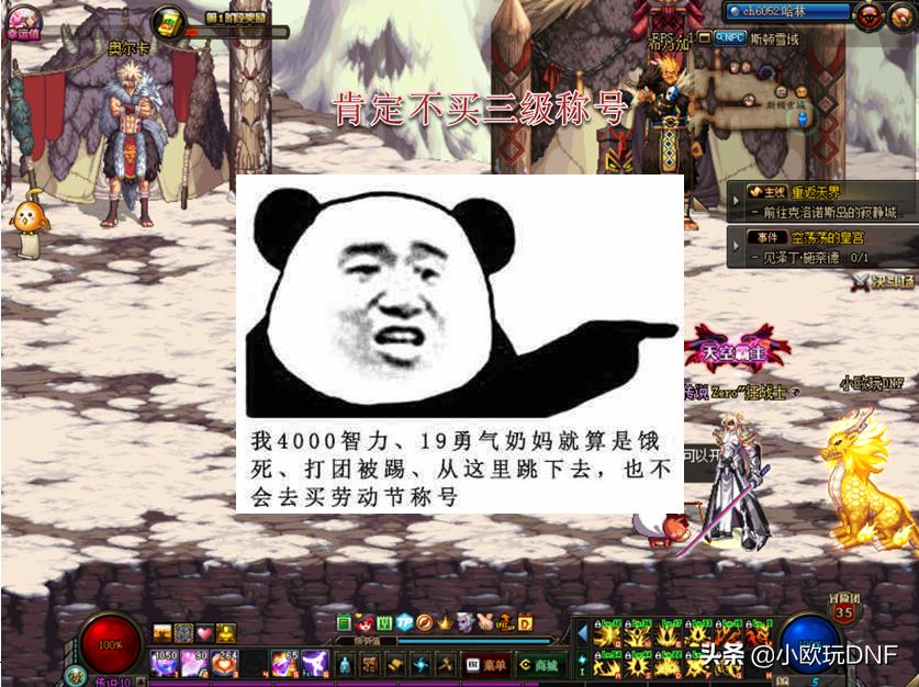 而小欧奶妈没有买三级称号buff,不是没钱去买,而是根本不愿意去买,想赚小欧奶的钱,根本不可能,小欧奶妈,本来打算当做大号来玩的,但是在后来慢慢的被这些C给磨灭了。