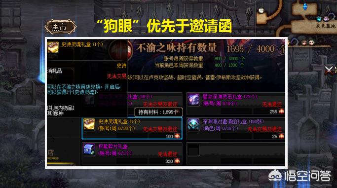 于是,有玩家发现了“兑换漏洞”,那就是曲线救国,不用邀请函直接换时间引导石,而是用深渊邀请函“兑换”史诗灵魂!但是没有任何商店有深渊邀请函兑换史诗灵魂的业务,这就需要我们如此操作:刷低级深渊,获取史诗,分解获取史诗灵魂!具体操作如下: