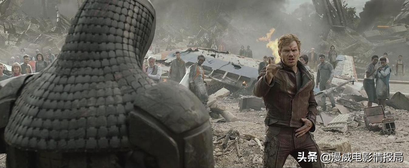 在《复仇者联盟1》中是英雄们通力合作才击败洛基并关上传送门拯救地球,钢铁侠还上演了一幕悲壮的送核弹,而在《银河护卫队1》中,英雄胜利的关键却是星爵的尬舞……