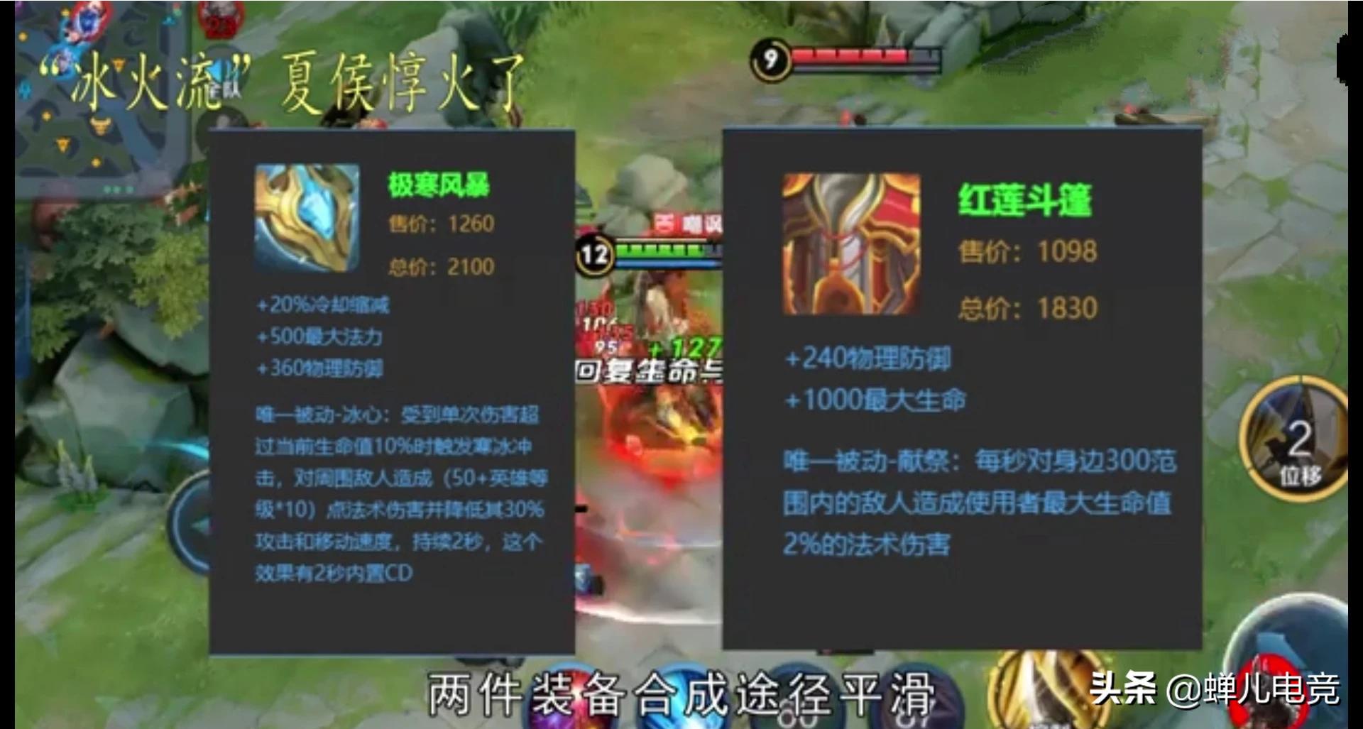 夏侯惇的回血能力非常的强,在续航方面完全不用担心。还有就是夏侯的二技能护盾效果和真实伤害是真的厉害,打出来的伤害真的是十分给力。下面蝉儿就给大家介绍一下“冰火流”的夏侯如何操作!这种玩法的夏侯冰火属性叠加,开大招更稳轻松站撸一打三。
