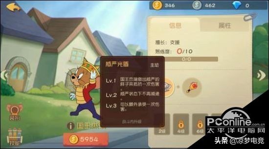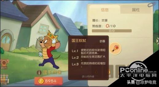 3.国王杰瑞,两个技能都是护盾,保命能力强,单排可以使用,开黑时效果也不错,技能国王权杖可以让一定范围内的队友无敌,威严光盾到三级可以有2层护盾,基本上不怕被抓