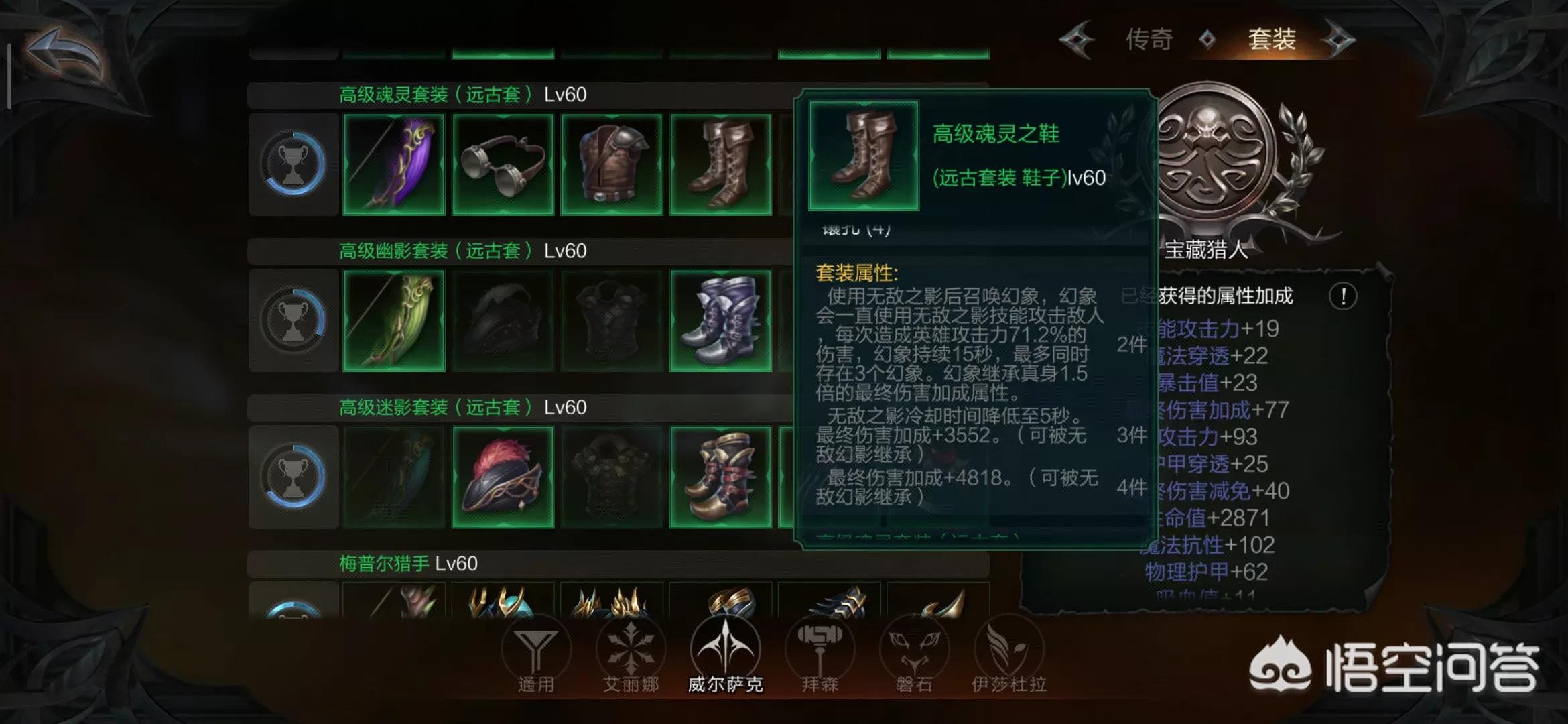 其实我认为还有一个套装也是挺不错的,就是灵魂套,这个套装相比较迷影套要好出一些,伤害也不错,他能使你的4技能同时召唤一个幻像攻击敌人,减少4技能的冷却时间,因为4技能选用无敌之影是可以无敌的,那么就增加了我们的生存能力,天赋和迷影的差不多。