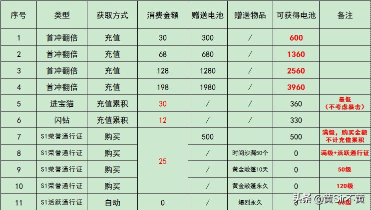 这个里面确实有腾讯一贯的风格,目前性能排在前三的是魔怪,绯红尖峰,蔷薇棉花糖,后两款基本在600(单纯购买),魔怪是消费达到V8送30天(大约等同于消费2000)所以我们可以做的就是花更少的钱积攒获得同样或更多的电池。