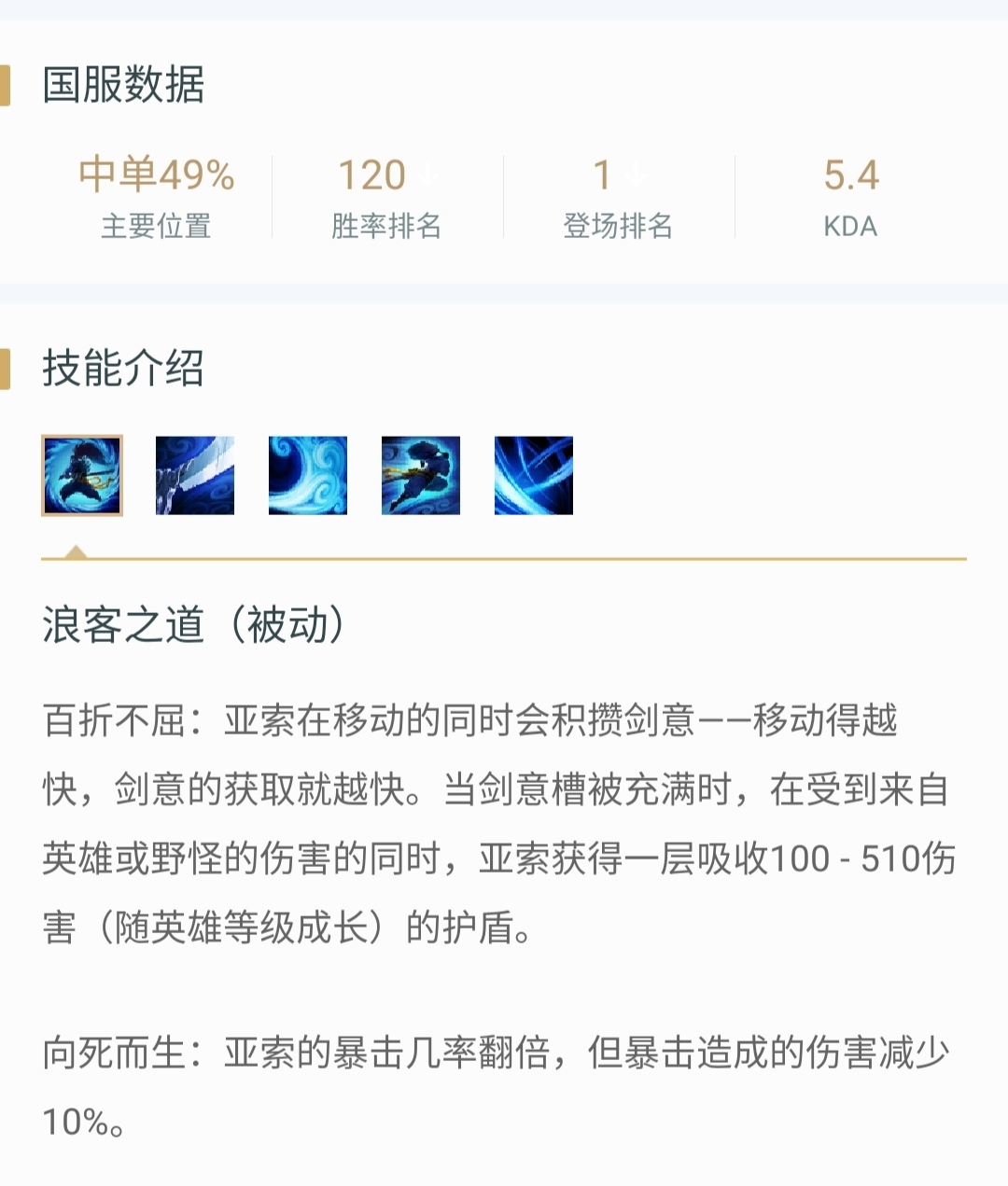 而作为中路一直以来的人气王,亚索在这个赛季似乎有些“水土不服”——在最新的胜率榜中,亚索排名垫底,仅仅排在全部中单英雄的41位。