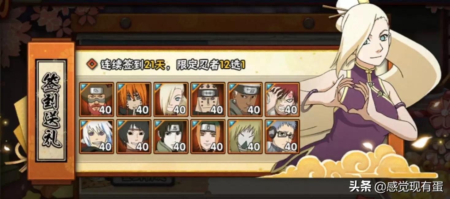 连续签到21天奖励在下次更新后会有改动,除了以上12位忍者外,会额外增加一个5张忍者之印的选项,这个改动对已拥有忍者的玩家还是很友好的。限定忍者升星难度大,能拿5张招募券也是美滋滋。