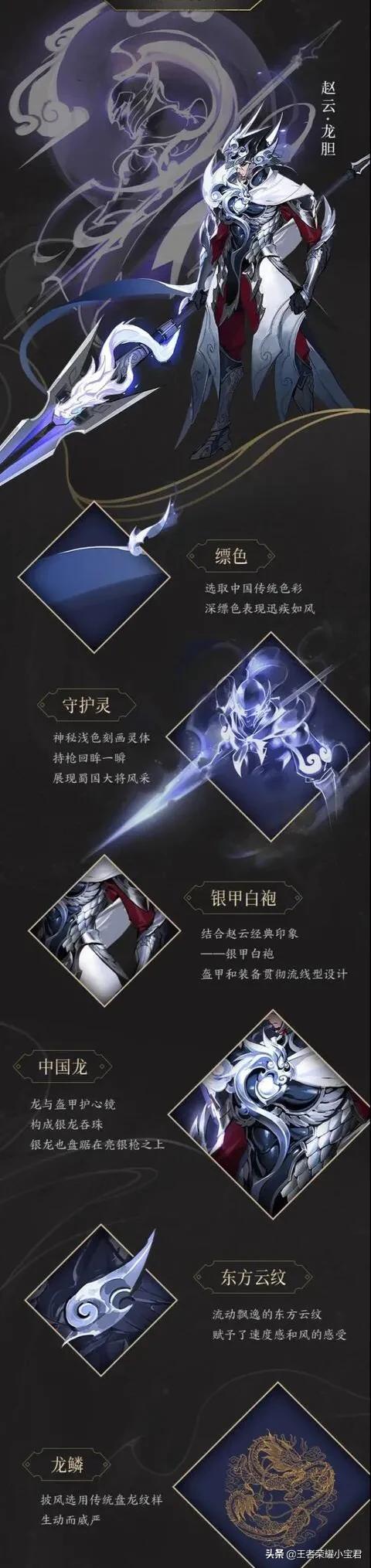 从皮肤设定可以看出这次设计师又骑在建模脑袋上了,说实话设计里的还挺有“龙胆亮银枪”的味儿,到了建模就开始差点意思。