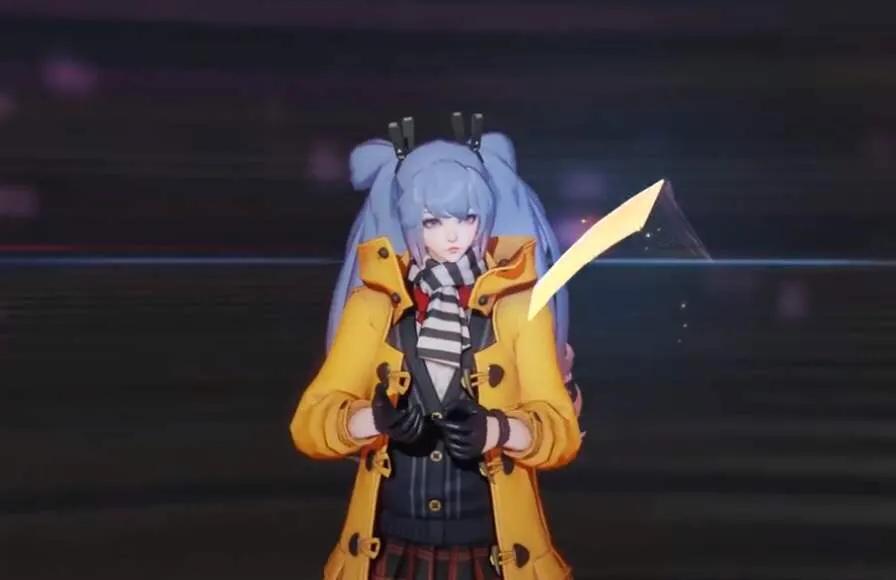 一技能色调以蓝紫渐变色为主,在开枪的一瞬间枪口会出现心形特效,攻击以激光形式直线打出。