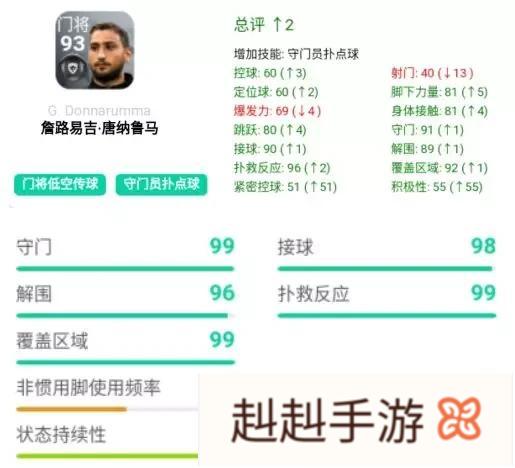 在这14名现役黑球门将中,门柱君极力推荐的就是来自AC米兰的唐纳鲁马,就是大家俗称的“钱多多”。又是一个比门柱君还小的年轻小伙,数据已经非常逆天了,门将五围数据中,有三个达到了99(守门、反应、覆盖),其余的也是一个98(接球)与一个96(解围)。而这三个达到99的守门数据恰好是门将数据中最常用到的几个数据,196cm的模型搭配99覆盖,不敢想。96的解围虽然不如其他数据那么亮眼,但总归是在上游水平,况且一场比赛中的解围机会比扑救机会要少上很多。更重要的是人家现在才20岁,还是意甲扑救成功率最高的门将之一,目前还是金球的他就已经拥有准毕业实力,可以说是前途无量了。