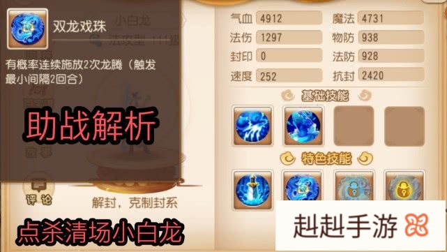 好了今天的《梦幻西游手游》助战解析篇-被法系耽误的解封大师小白龙就到这里了,有缺点,但是优点也很明显,所以出场率还是蛮高的,你觉得小白龙怎么样?