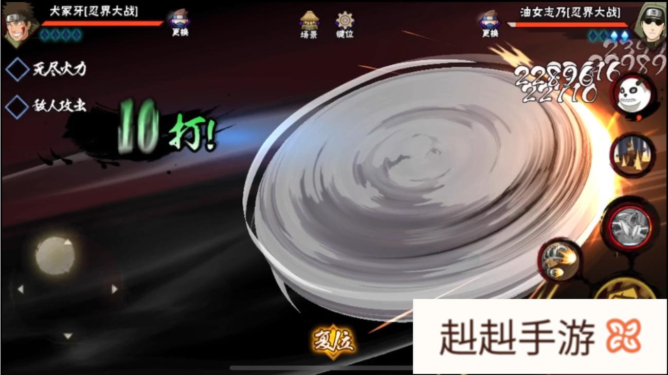 忍战牙的奥义算是略微跟之前版本的牙有点区别,效果也算是比较不错,只是没办法接技能,只能在墙角的位置接一些扫地秘卷或者通灵,然后再去接普攻或者技能什么的,这个忍战牙的整体强度其实还可以,但没有像之前奥摩伊或者鹰水月那么大众化,很多玩家不太擅长用之前的疾风牙和新春牙,就是因为他需要有赤丸的攻击配合,这方面是需要你的熟练时间。(我个人就不太擅长用犬冢牙)