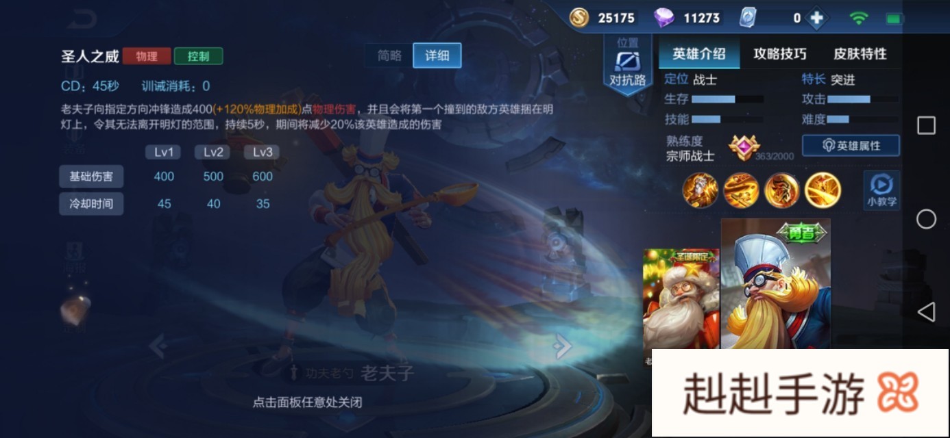 1、老夫子大招:老夫子向指定方向冲锋造成物理伤害,并且会将第一个撞到的敌方英雄捆在明灯上,令其无法离开明灯的范围,持续5秒,期间将减少20%该英雄造成的伤害。