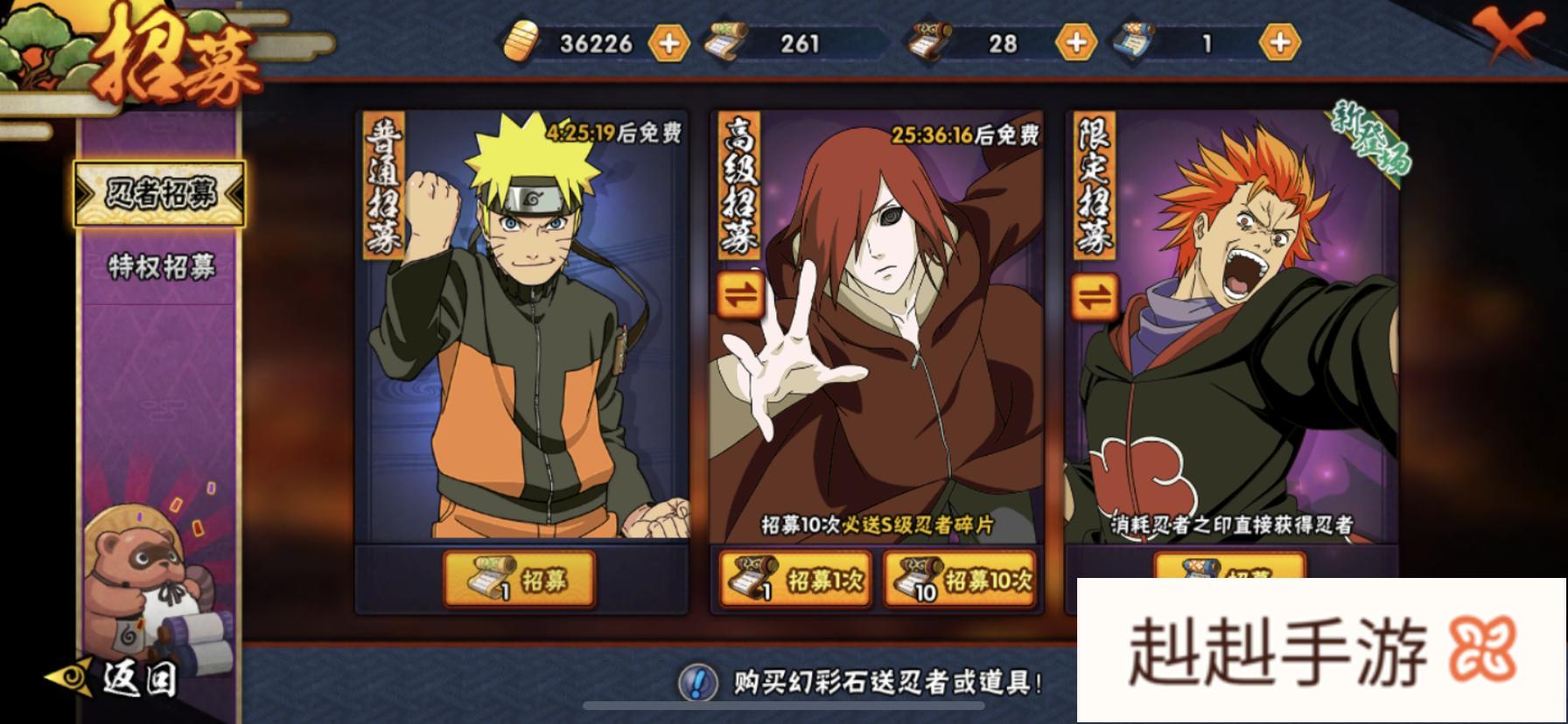 一,火影忍者手游,我现在有26片长门,1600金币.还能抽到长门吗?
