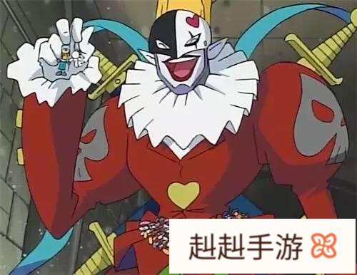 面对战斗暴龙兽更是将其虐得体无完肤,要不是钢铁加鲁鲁登场的话早就挂掉,后来更是用必杀技小丑魔术将所有人变成了钥匙扣,假如不是最弱的天使兽及时进化神圣天使兽的话就真的全灭,即使被选中的孩子全力而无法打败小丑皇只是将他封印在天国之门里。