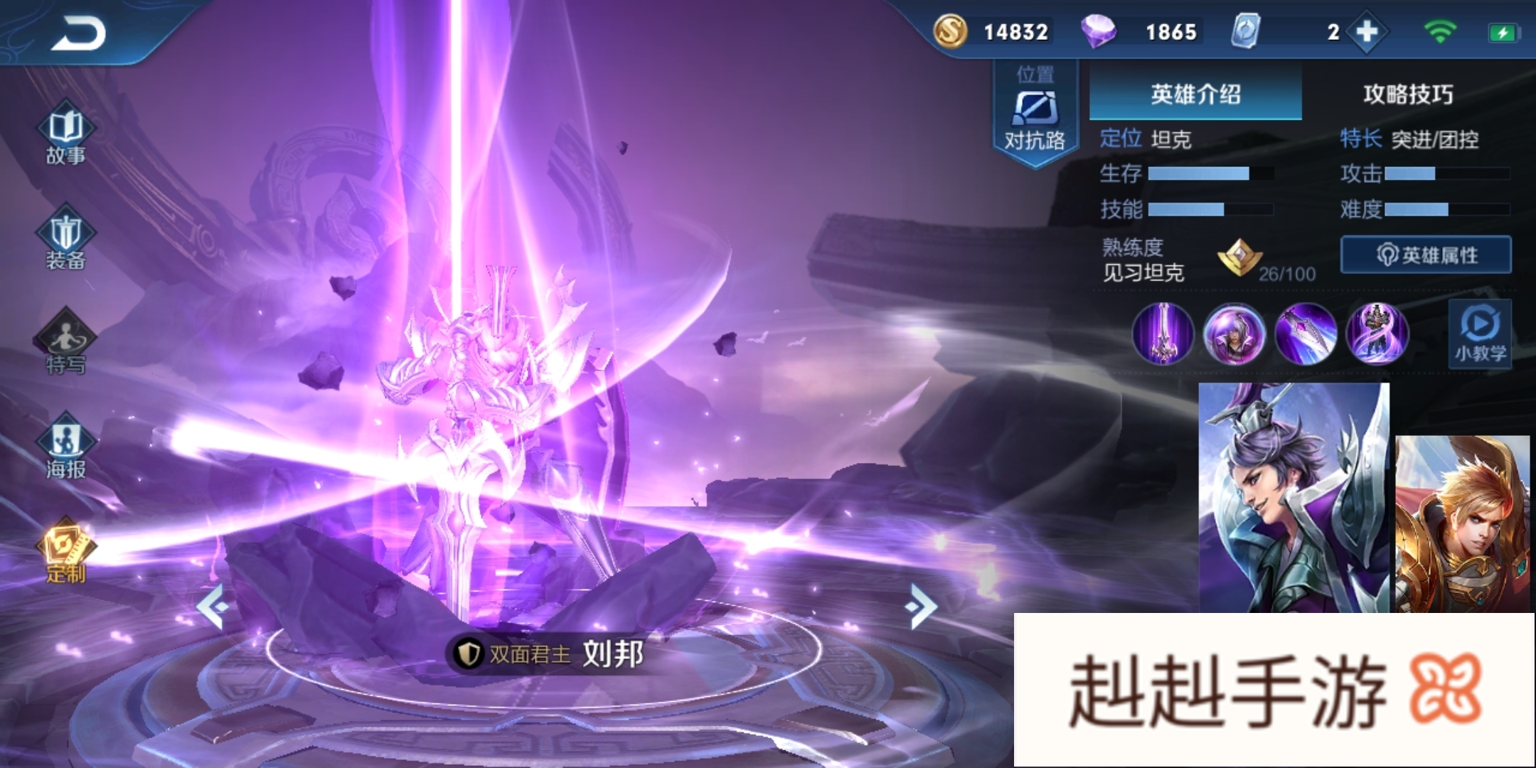 在大多数玩家的眼中,带线型英雄一般在打团时都显得比较乏力,要不就是手短打不到人,要不就是皮薄扛不住伤害。但是今天这个黑科技英雄,无论是打团还是单带,都有着极强的作战能力。团战中的他可以吃下成吨伤害并且打出稳定控制,单带时也有着超高的机动性,瞬间到达团战战场支援队友。他就是-刘邦。技能解析