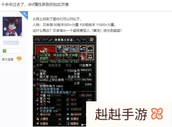 dnf怎么说也有11年周年庆了,那么十一年的时间从506到1.1W力量的变化究竟合理吗?老玩家表示合理。