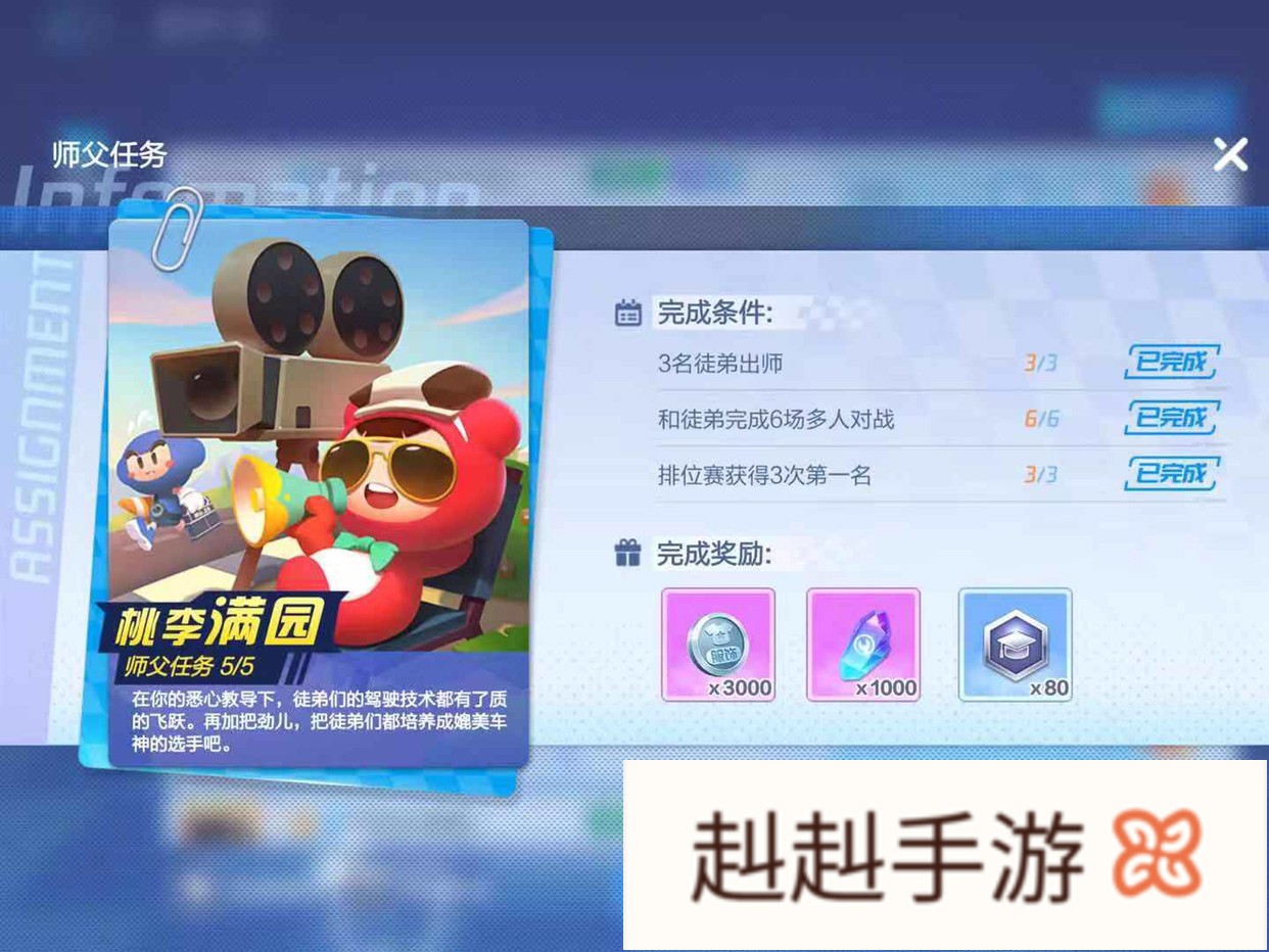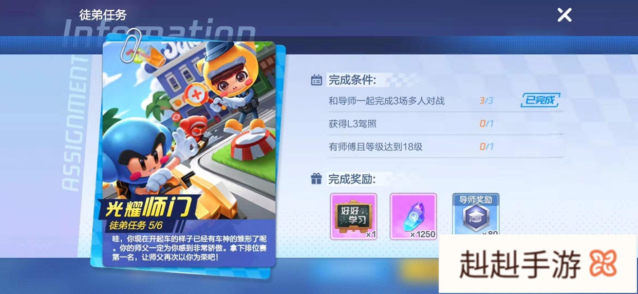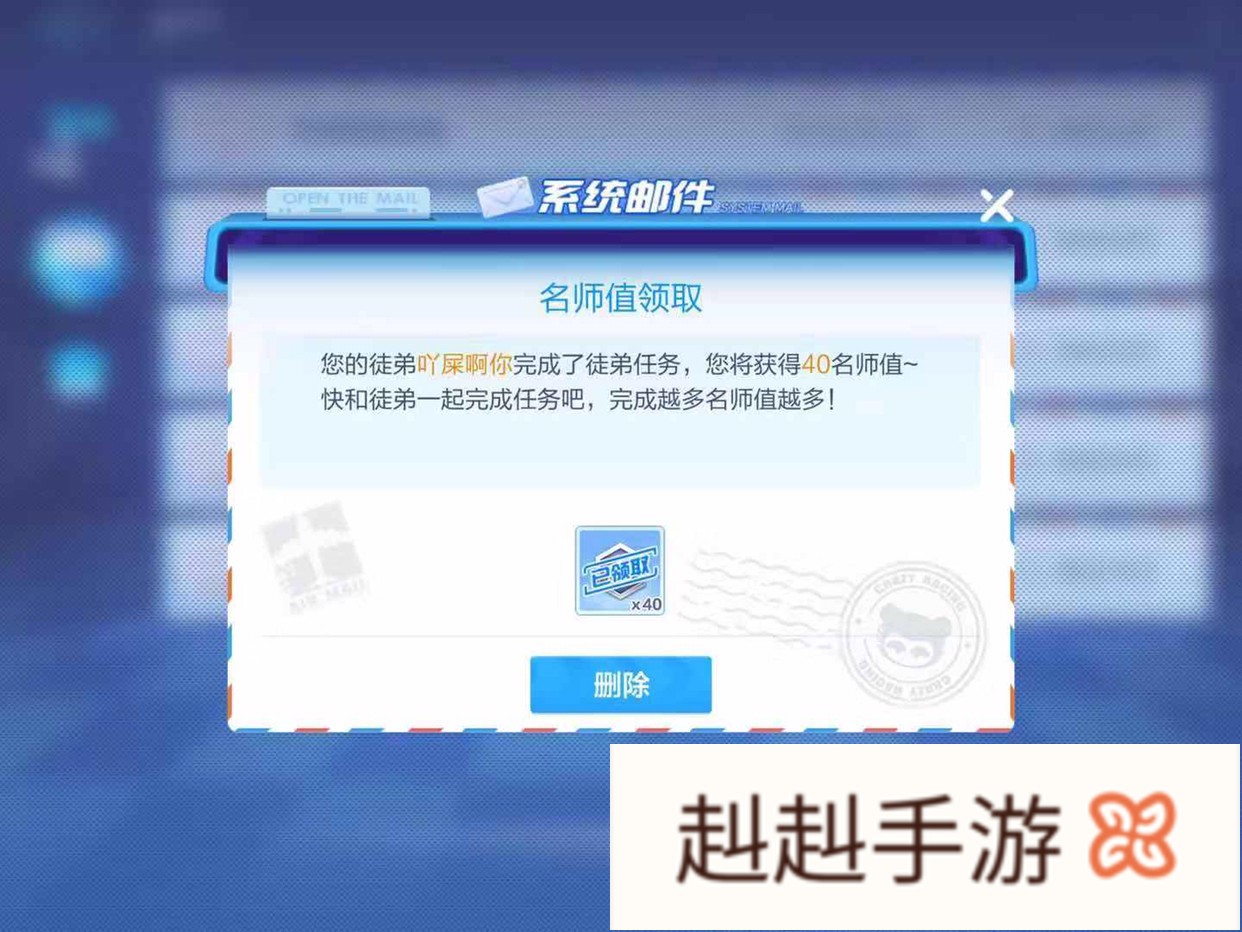 师父任务完成了之后呢,我们就需要带徒弟完成徒弟任务,徒弟每完成一个徒弟任务任务,师傅都可以获得名师值,徒弟任务总共有6个,每个任务分三个完成条件,徒弟完成一个师傅获得一个任务的名师值奖励,通过邮件发放。