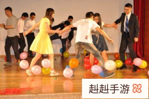3.首先,抽到嘴巴的必须借着抽到手的两人帮助来把汽球给吹起(抽到嘴巴的人不能用手自已吹起汽球);然后二个抽到脚的人抬起抽到屁股的人去把汽球给坐破。
