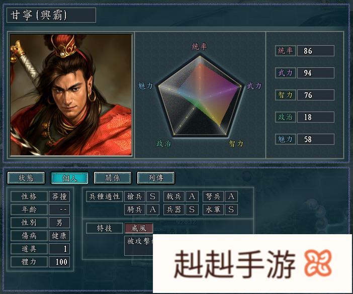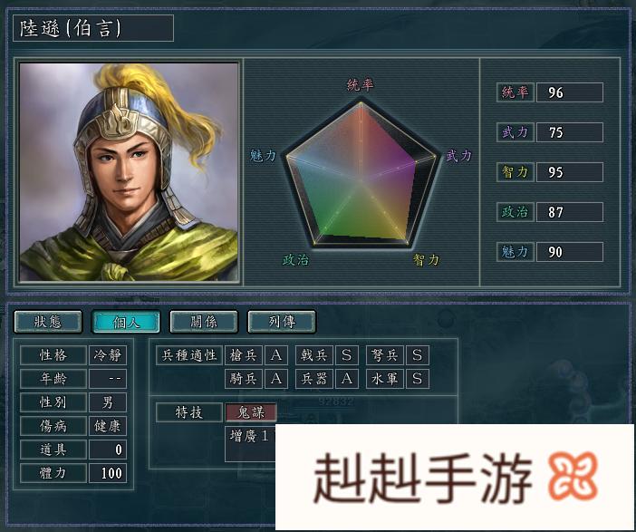 而且部队的兵种适性也要较好。不过这么要求貌似有点多余,因为这部分“三高”的武将,兵种适性也不可能差了。