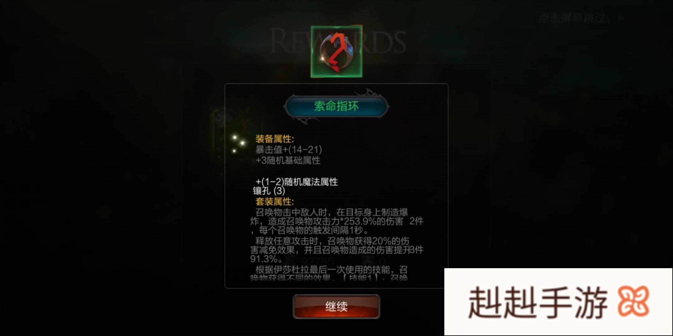 集齐索命套后,能触发一个AOE范围伤害,其特性与魂爆流有所想似。即召唤物给怪物造成伤害后,会在目标身上爆炸,伤害效果是召唤物伤害的253.9%。而结合前文所言的增伤,索命套的效果即成了最适合召唤流使用的流派。