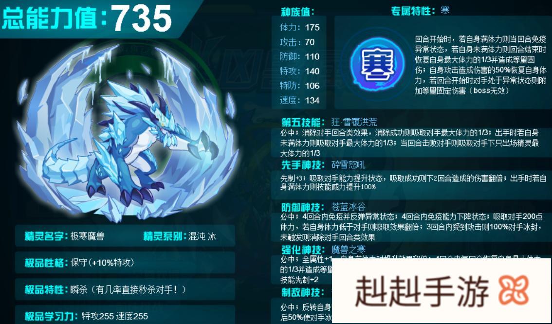 这个魔兽的属性特别差,被神灵四倍克制,正好撞到新年费,除去新年费,星皇帝君对其的高倍克制也是致命的,面对即将来临的年费混战环境很不利。