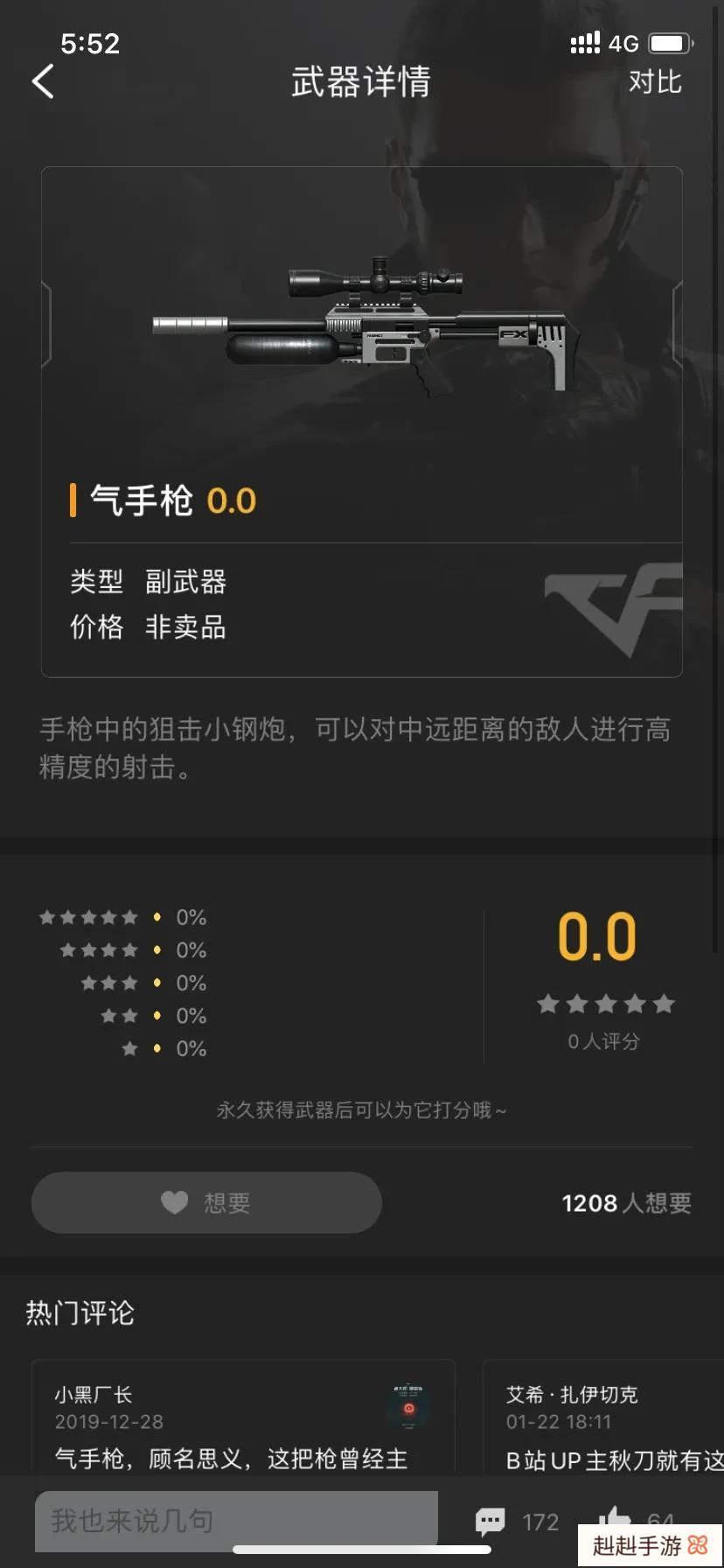 目前正式服里,还没有永久气手枪可以获得,19年12月到1月版本更新得时候是赠送过玩家限时的体验机会,所以目前没有相关途径可以获得永久,应该后面会通过活动碎片或者盒子的形式产出永久的,这把副武器很多人都很喜欢,我也说一下这把枪的攻略。