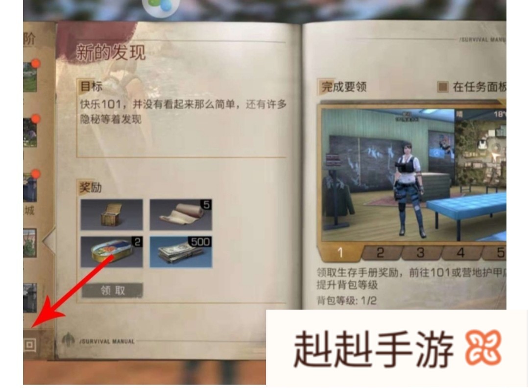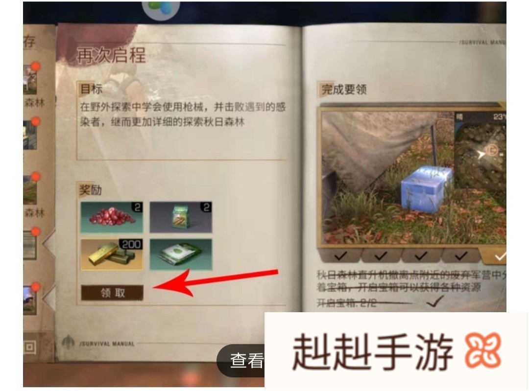 1 确认完成生存手册的任务奖励后,点击游戏界面上的“生存手册”图标